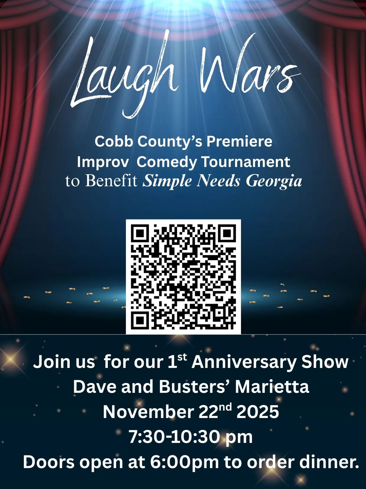 One Night Only! Help us bring even more laughter to this crazy world. We will be donating a portion of the night's proceeds to Simple Needs Georgia. Send us a message if you want to obtain cheaper VIP Tables than our last show.